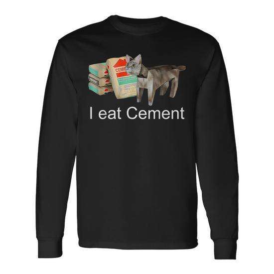 Maglietta a maniche lunghe con meme del gatto che mangia cemento, design ispirato ai meme di Internet