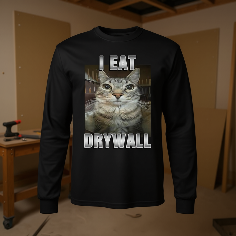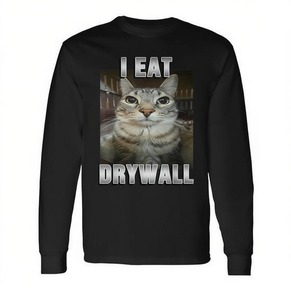 Maglietta a maniche lunghe I Eat Drywall Cat