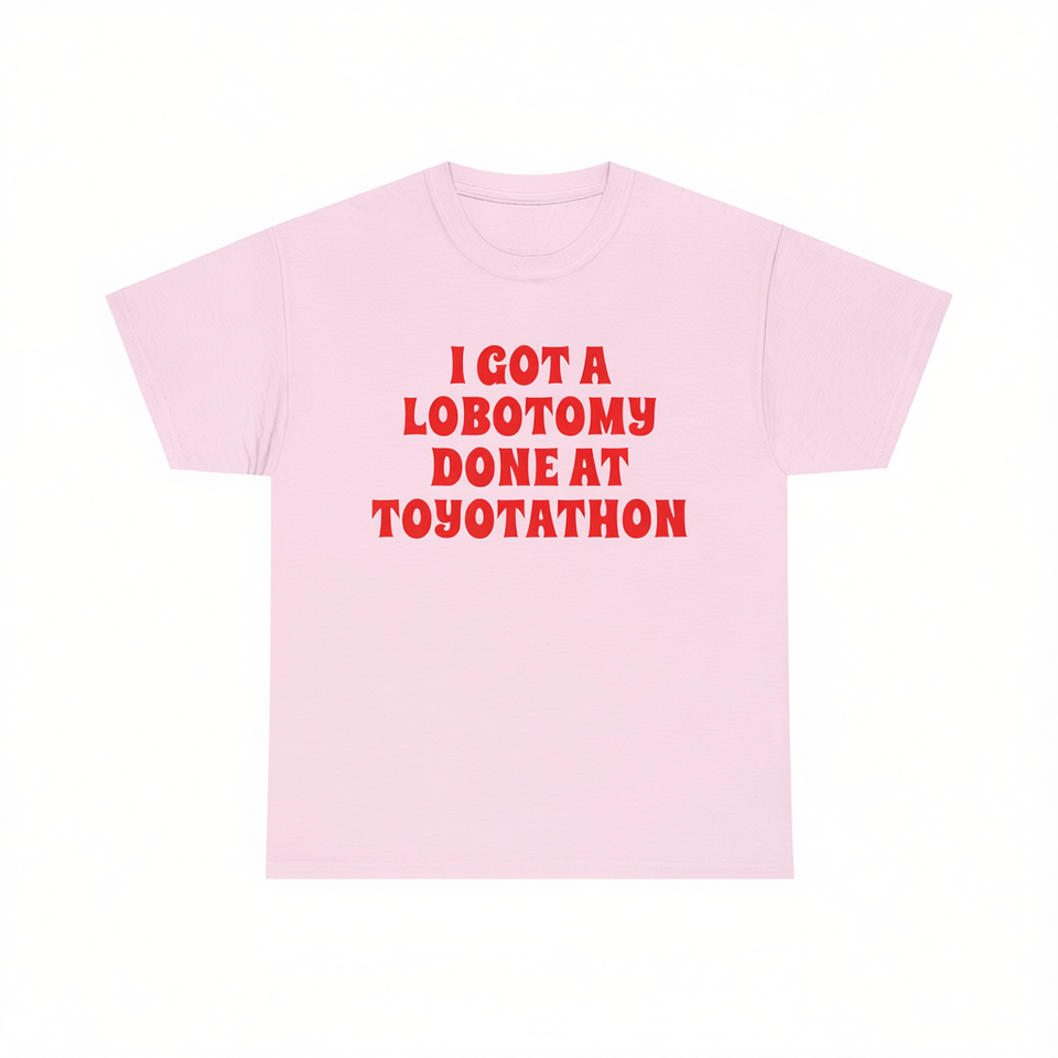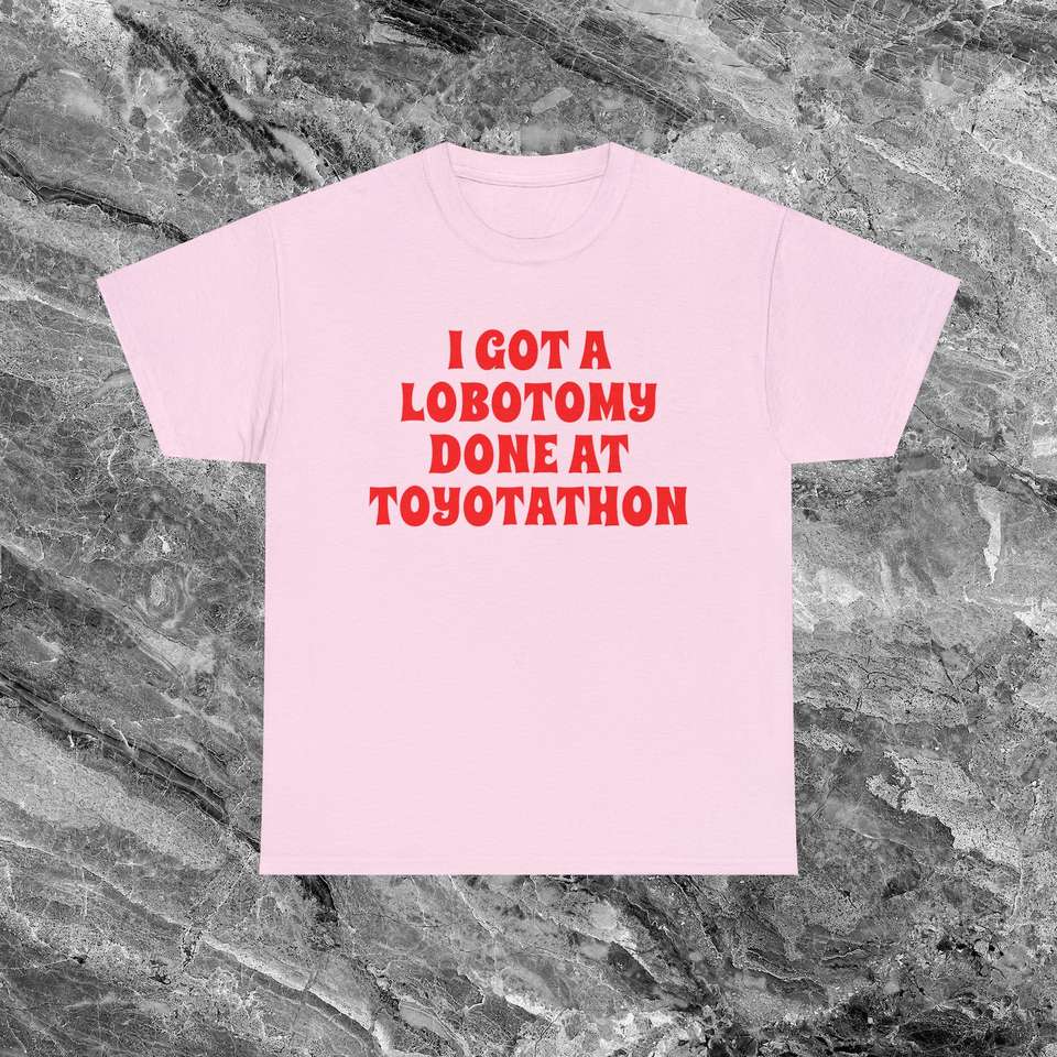 Maglietta con stampa serigrafica 'I Got A Lobotomy Done At Toyotathon' unisex per adulti, a maniche corte e girocollo, promozionale