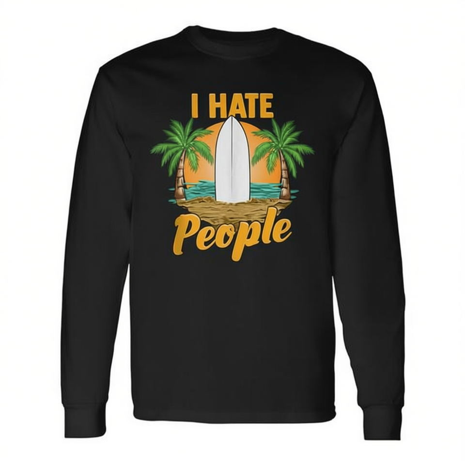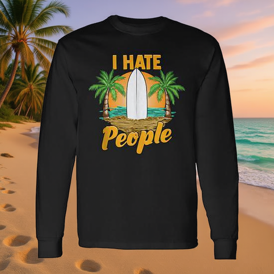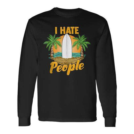 I Hate People Beach Surf Long Sleeve T-Shirt Relaxing Vacation Pun Design