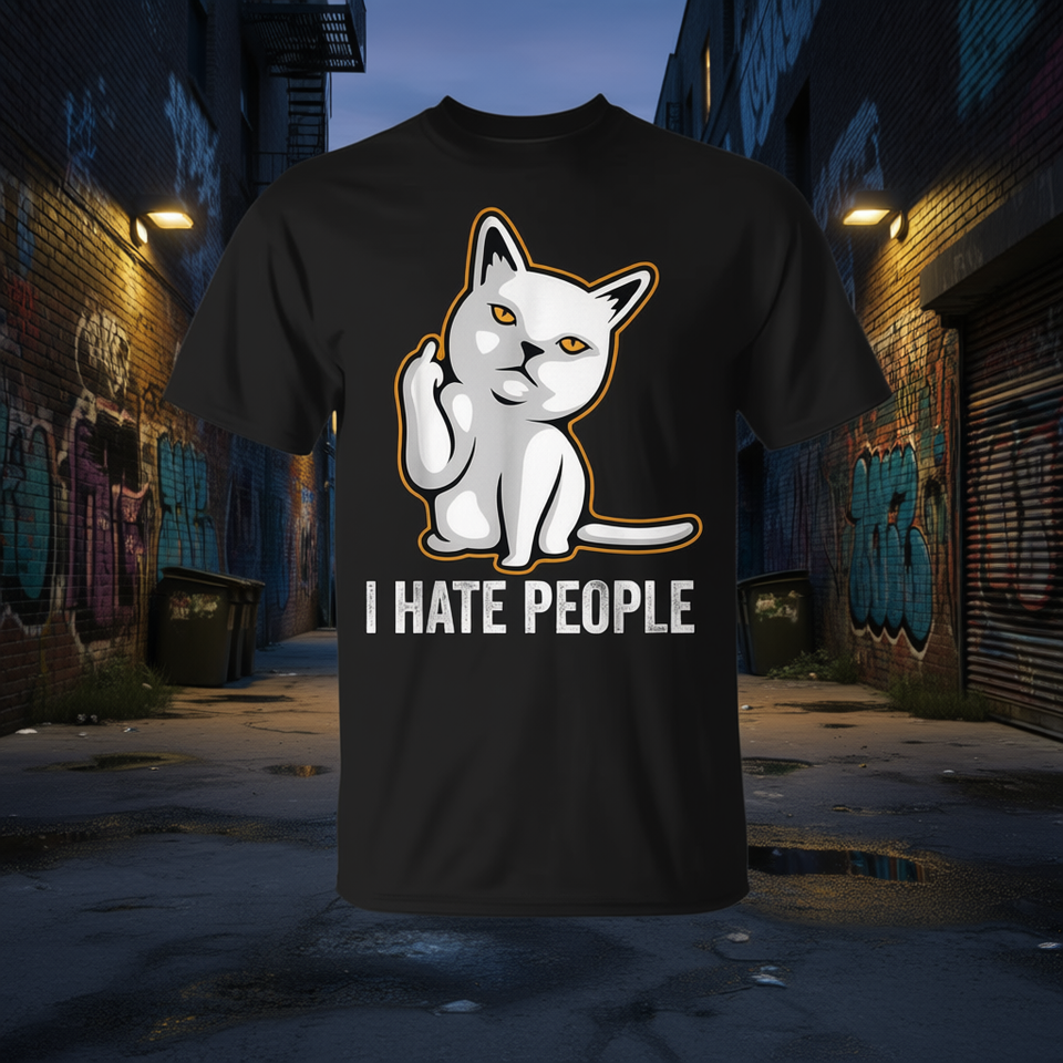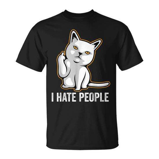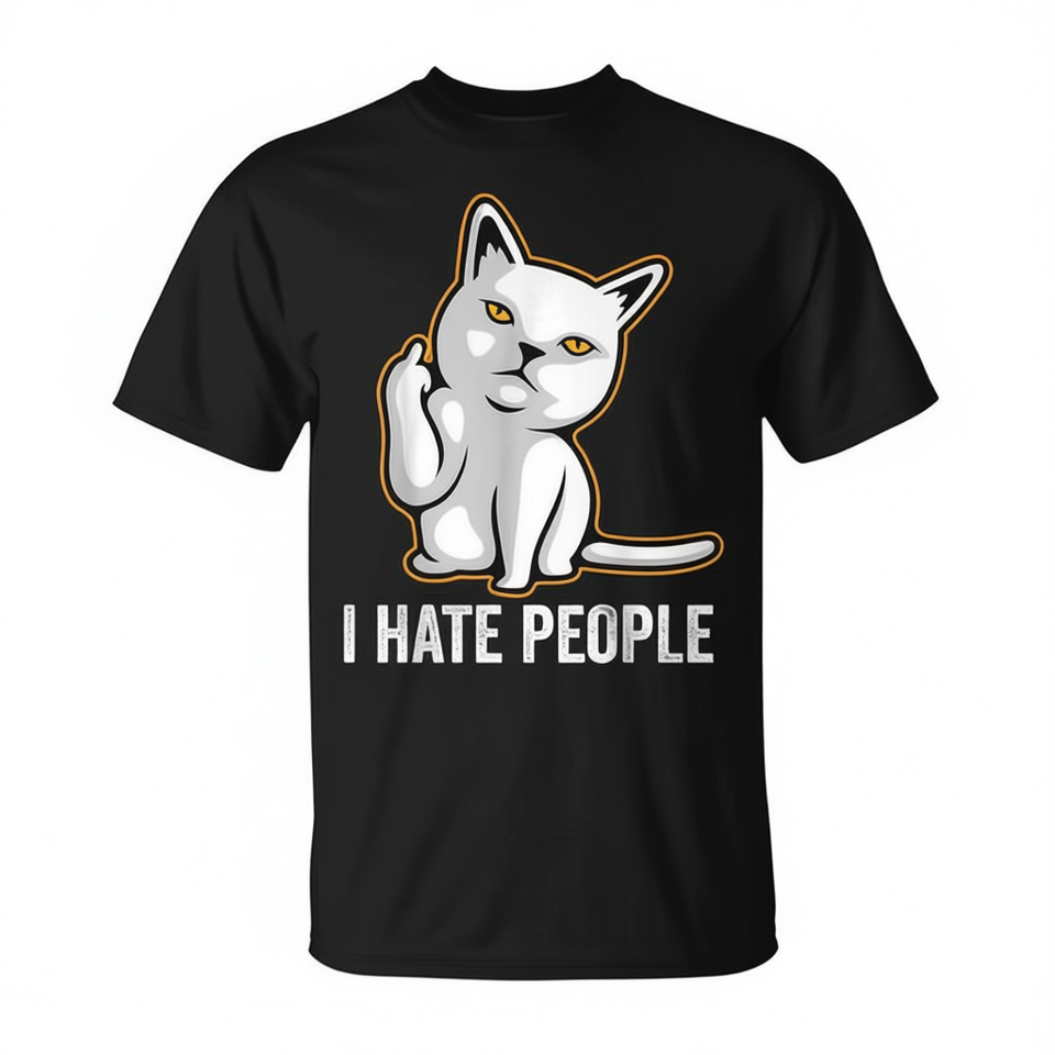 Maglietta I Hate People con gatto arrabbiato che fa il gesto del dito in alto