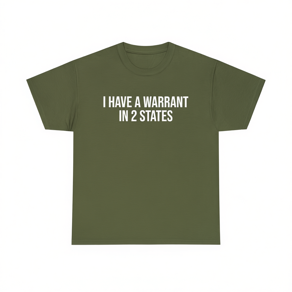 T-shirt con scritta 'I Have A Warrant In 2 States', maglietta divertente con meme, regalo scherzoso, maglietta scherzosa.