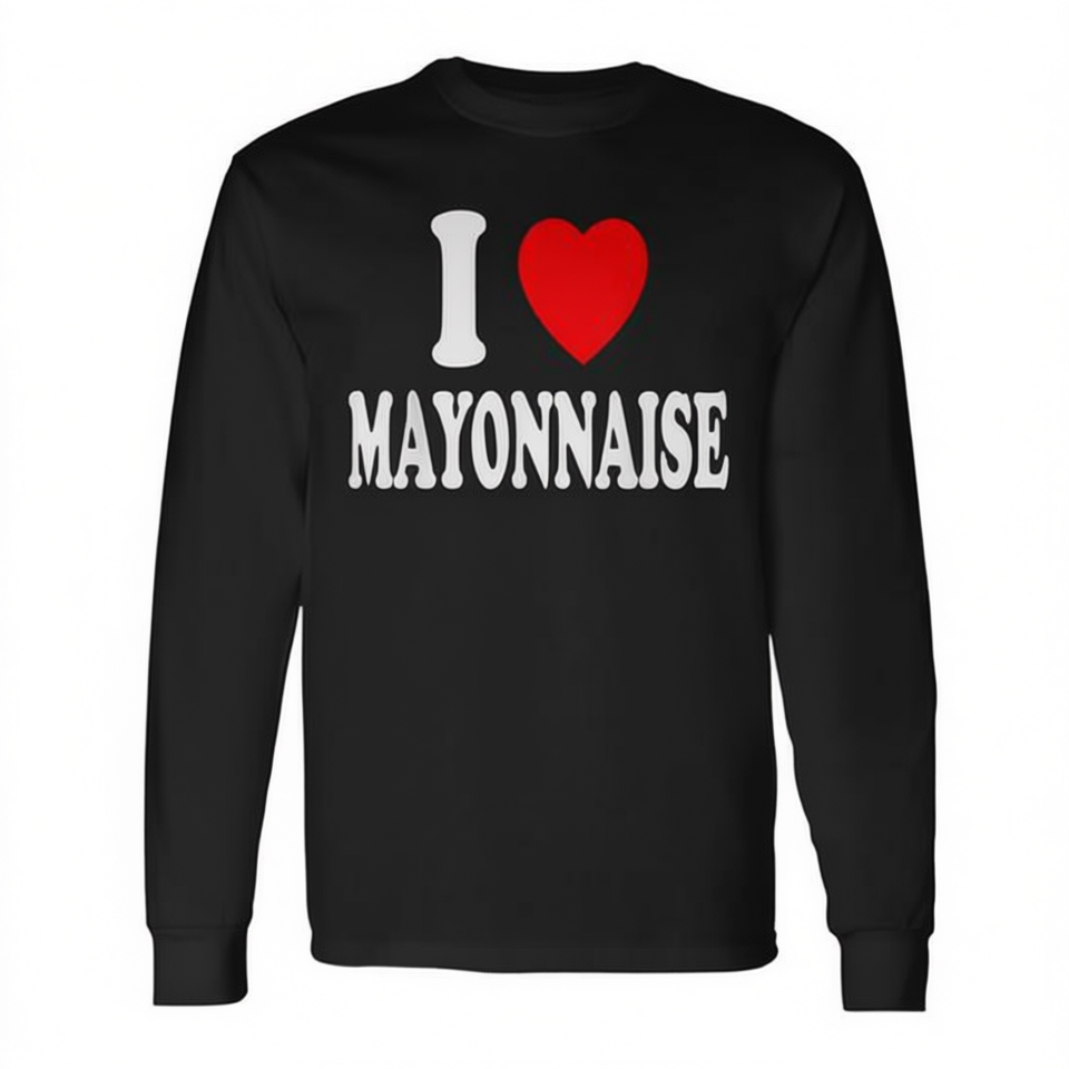 T-Shirt a Maniche Lunghe 'I Heart Love Mayonnaise' - Condimento Preferito - Prodotto Promozionale