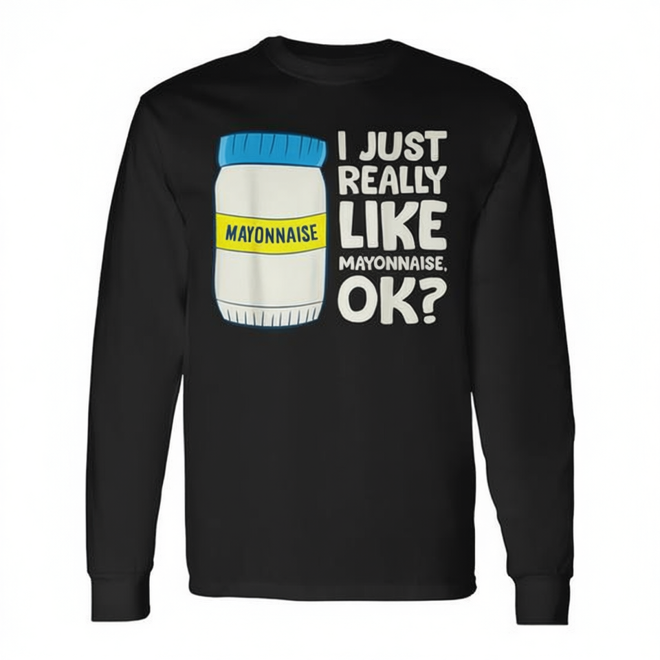 Adoro davvero la maionese, maglietta promozionale a maniche lunghe con stampa 'I Love Mayonnaise'