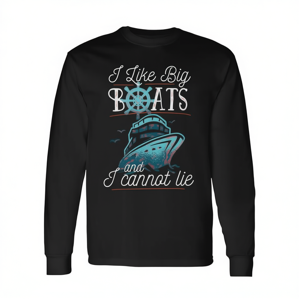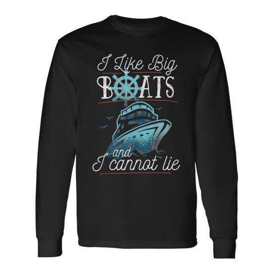 Maglietta a maniche lunghe con stampa digitale unisex, girocollo, per adulti, con stampa digitale, con scritta: "I Like Big Boats And I Cannot Lie"