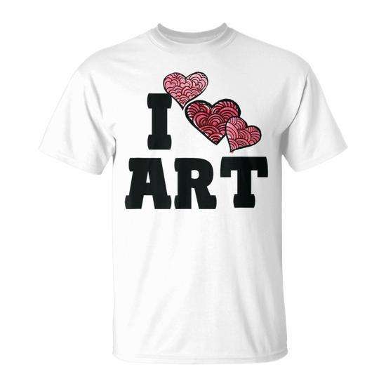 T-shirt I Love Art con divertente design artistico a cuori per insegnanti d'arte