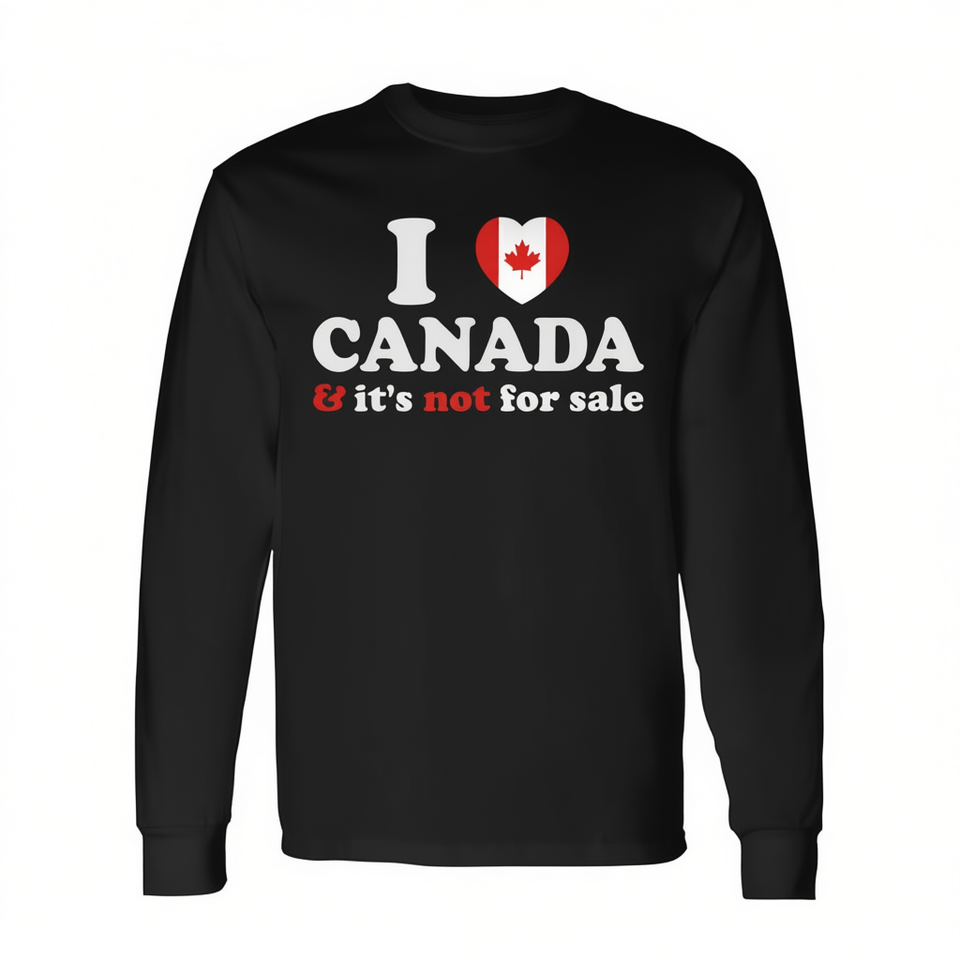 T-shirt a maniche lunghe con cuore e bandiera canadese, non in vendita, con scritta 'I Love Canada'