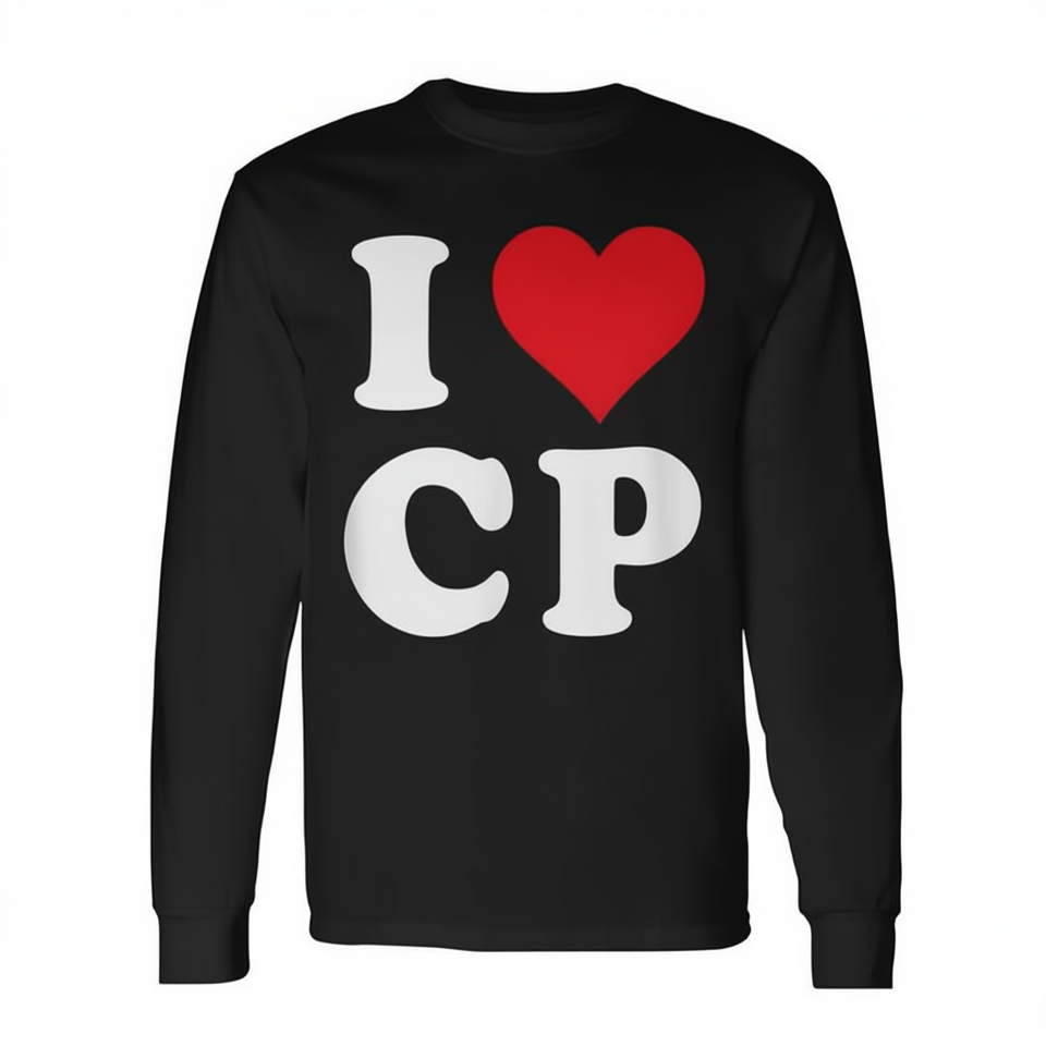 T-shirt a maniche lunghe I Love Cp Initials nera, lunghezza intera, 100% cotone, vestibilità unisex