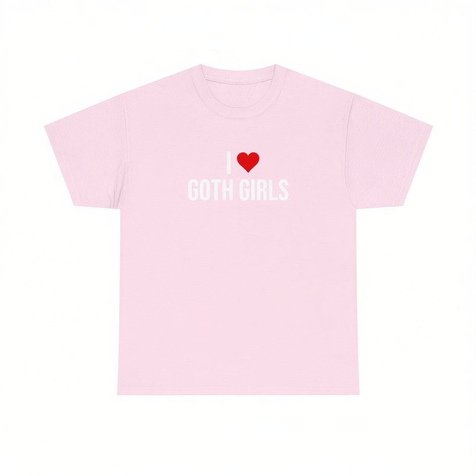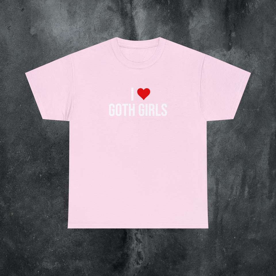 T-shirt I Love Goth Girls rosa unisex, divertente maglietta con meme