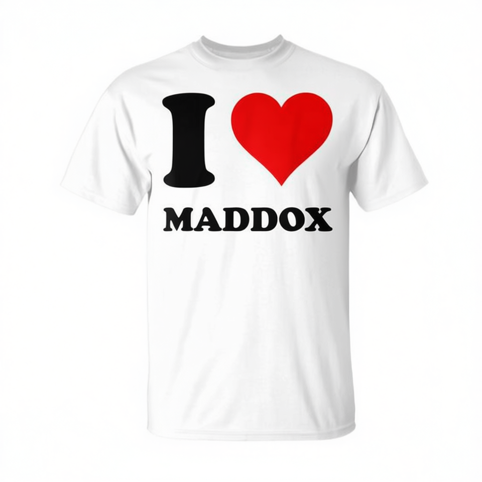 T-shirt I Love Maddox con design a cuore rosso, cotone bianco, taglia unisex per adulti