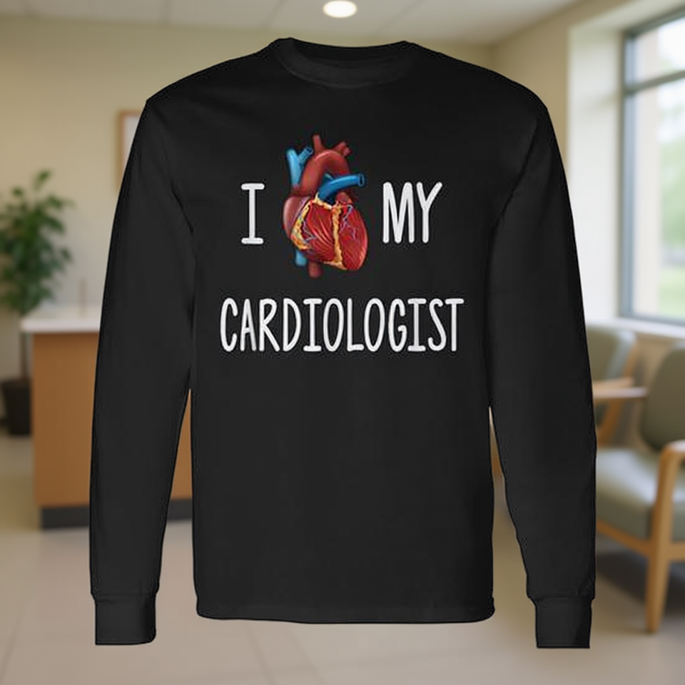 T-shirt a maniche lunghe con stampa visiva 'I Love My Cardiologist Heart'