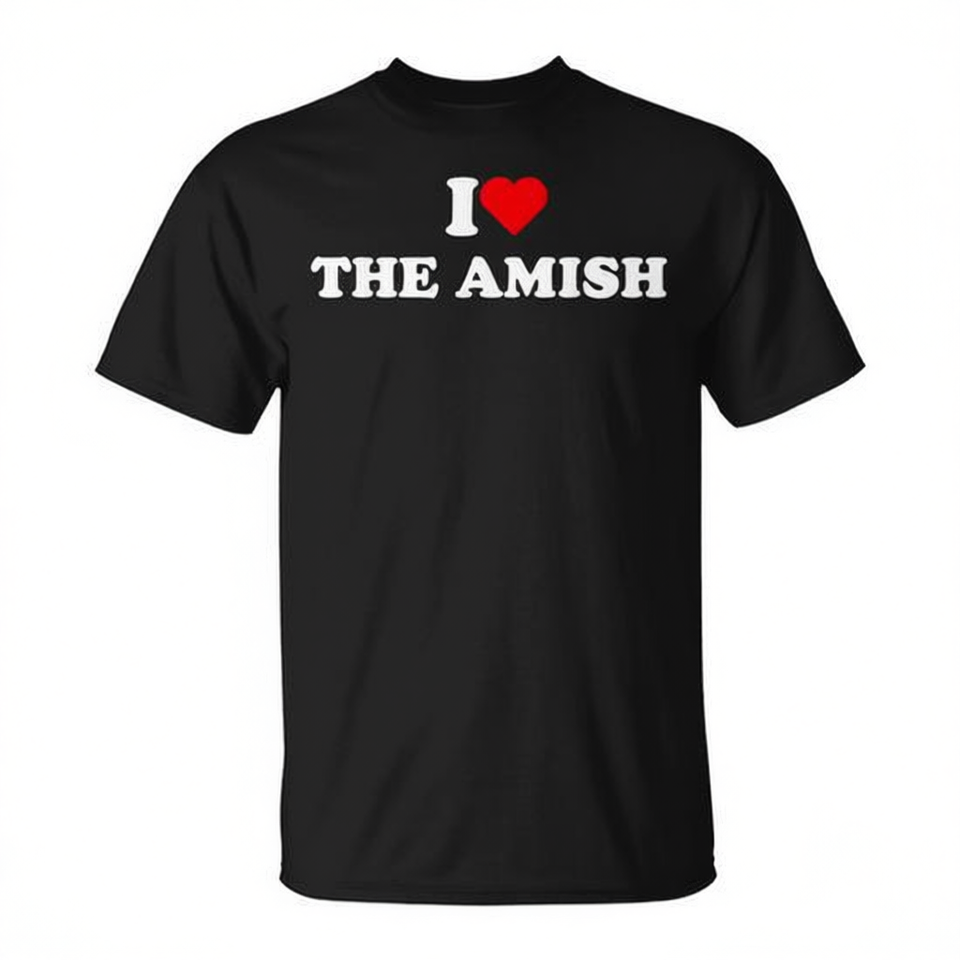 T-shirt con grafica retrò I Love The Amish, nera, per adulti, unisex