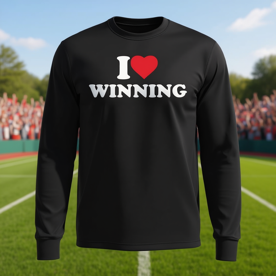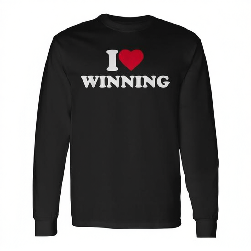 T-Shirt a Maniche Lunghe 'I Love Winning', Maglietta Promozionale Personalizzabile per Amanti della Vittoria