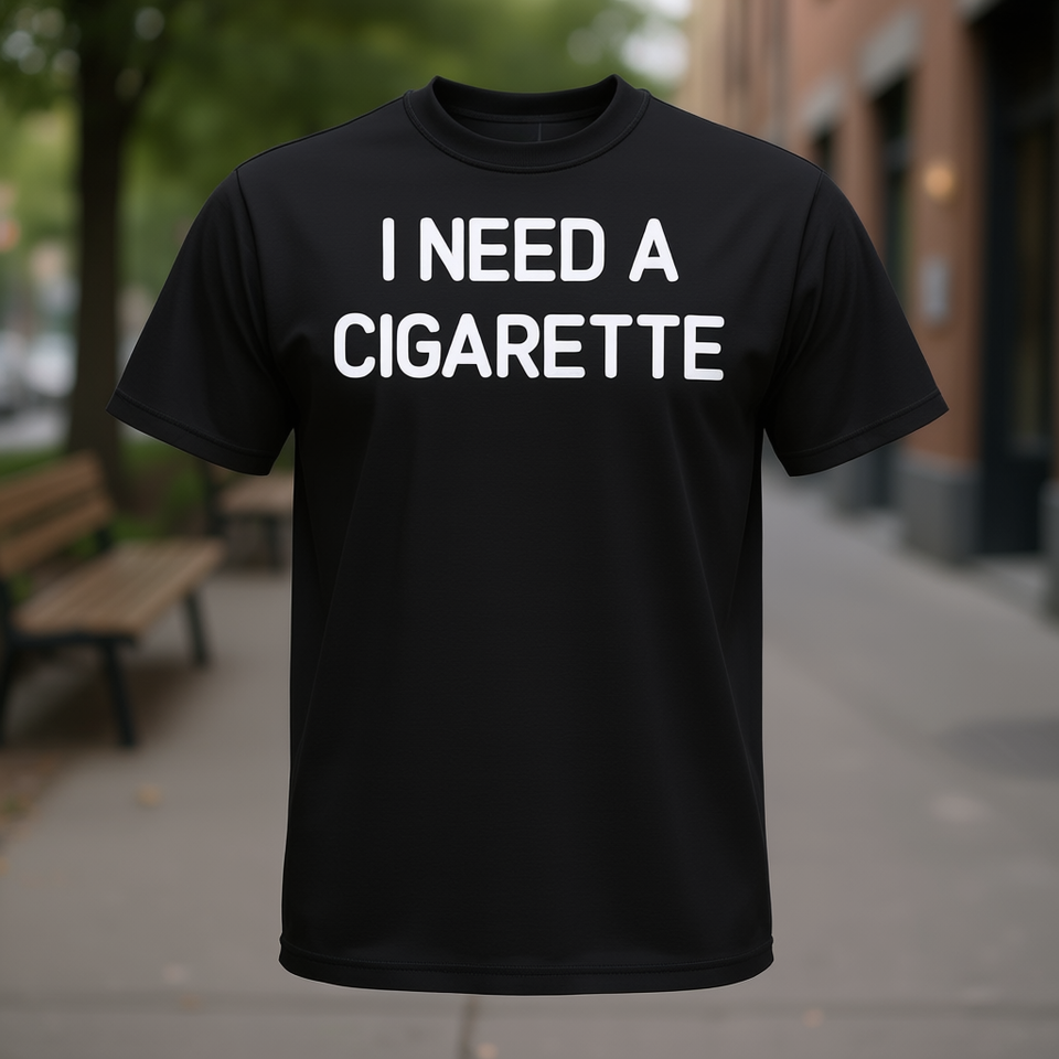 T-shirt sardonica I Need A Cigarette per adulti, unisex, nera, 100% cotone