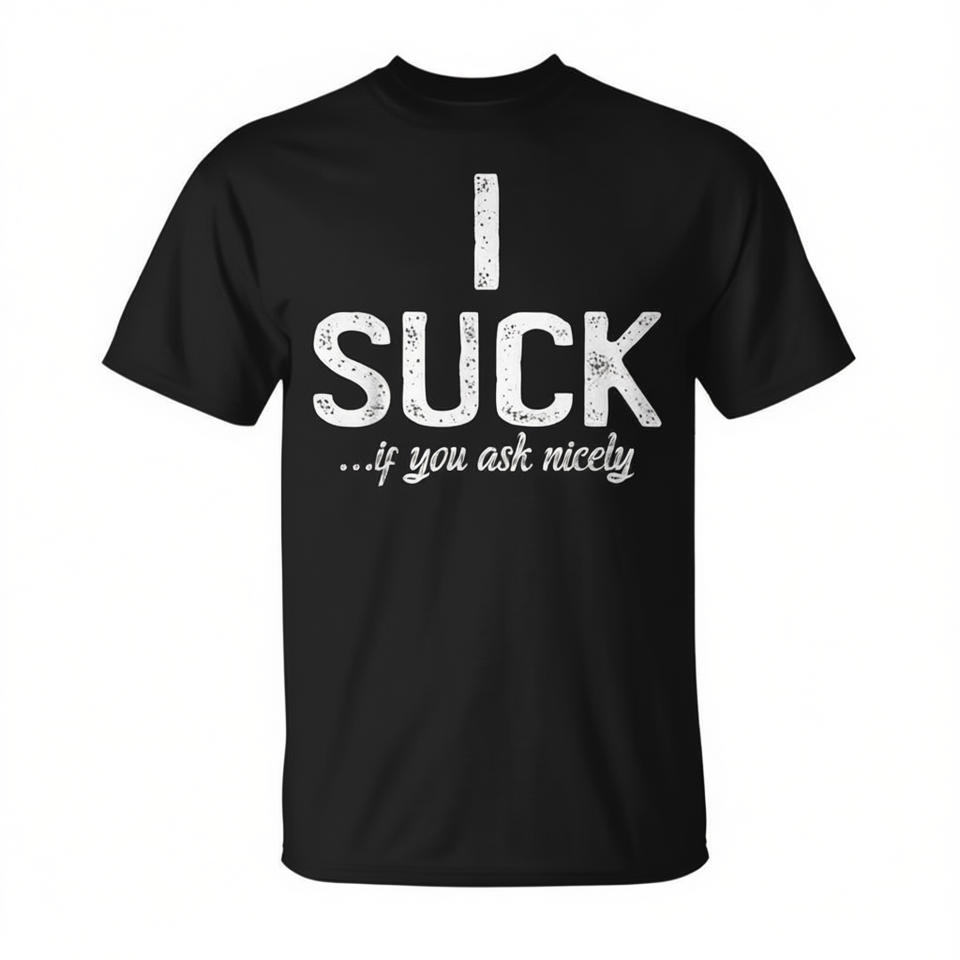 T-shirt Unisex per Adulti con Stampa Serigrafica 'I Suck If You Ask Nicely', Girocollo, Manica Corta, Abbigliamento Promozionale