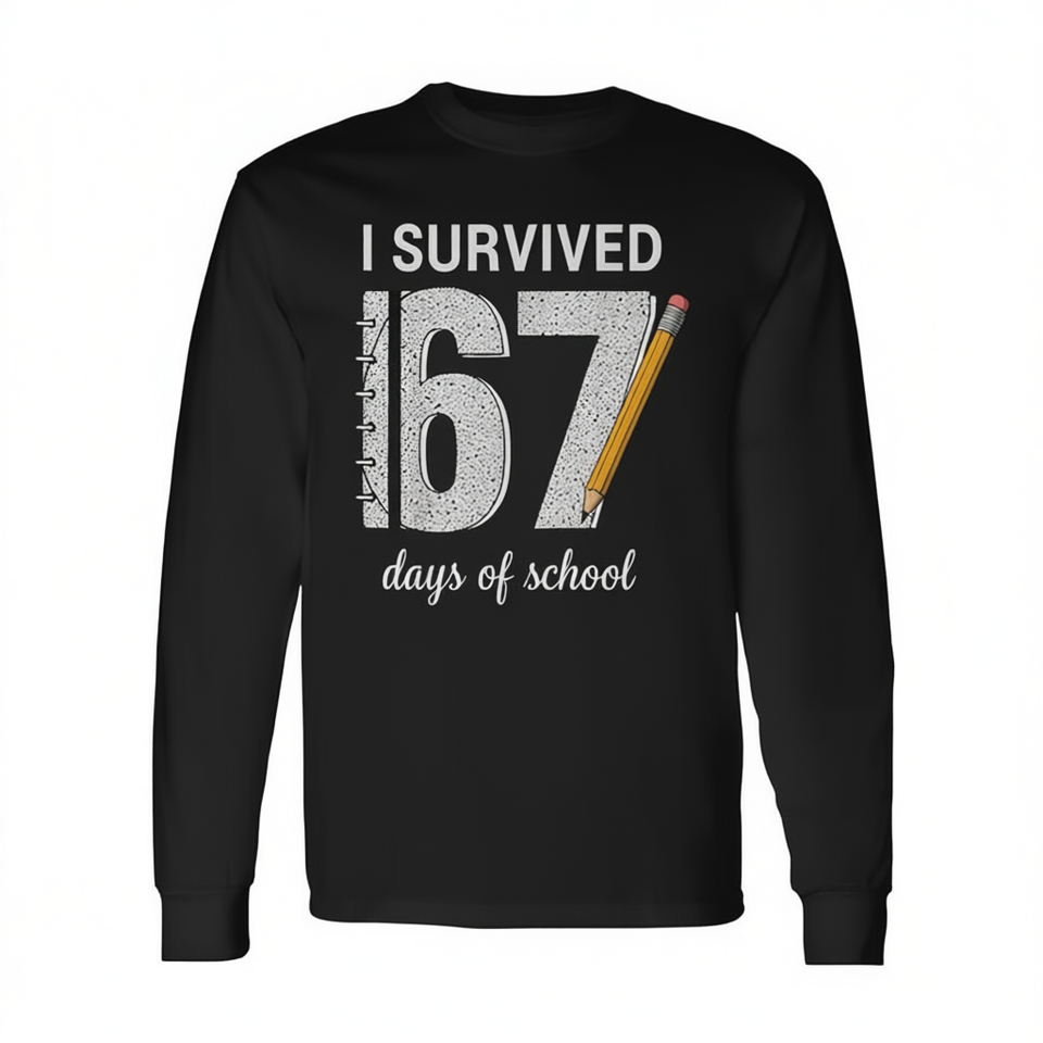 Sono sopravvissuto a 67 giorni di scuola, maglietta a maniche lunghe per studenti e insegnanti