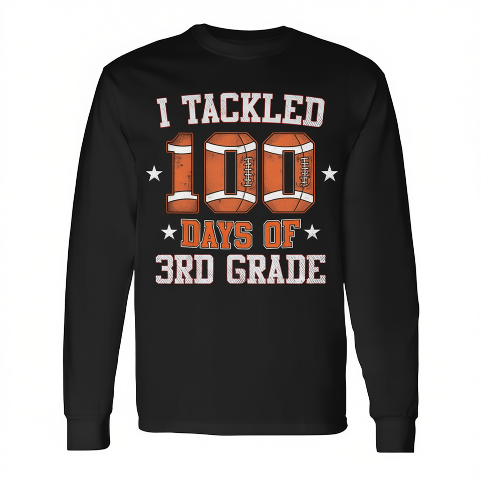 Maglietta a maniche lunghe con scritta "I Tackled 100 Days Of 3rd Grade Football" per bambini, unisex, girocollo, per il ritorno a scuola, laurea
