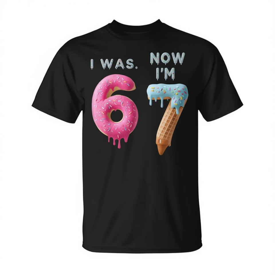 T-shirt di compleanno con scritta "Ero 6, ora sono 7" per bambini di 7 anni, divertente design con meme