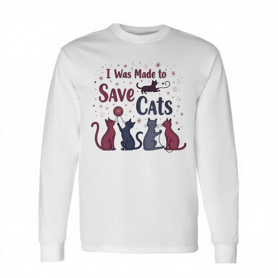 T-shirt a maniche lunghe I Was Made To Save Cats, per amanti dei gatti e avvocati per il salvataggio degli animali