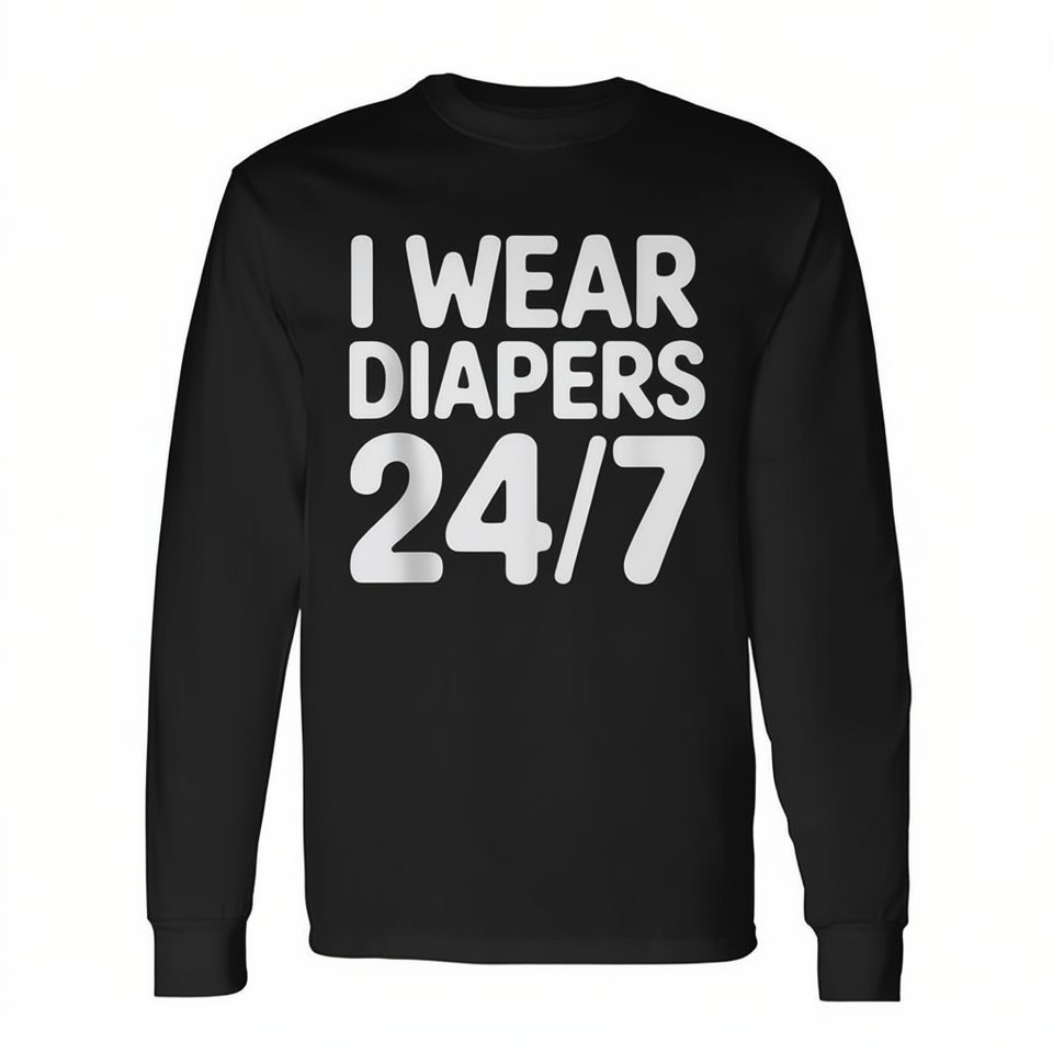 Maglietta a maniche lunghe I Wear Diapers 24 7, abbigliamento promozionale