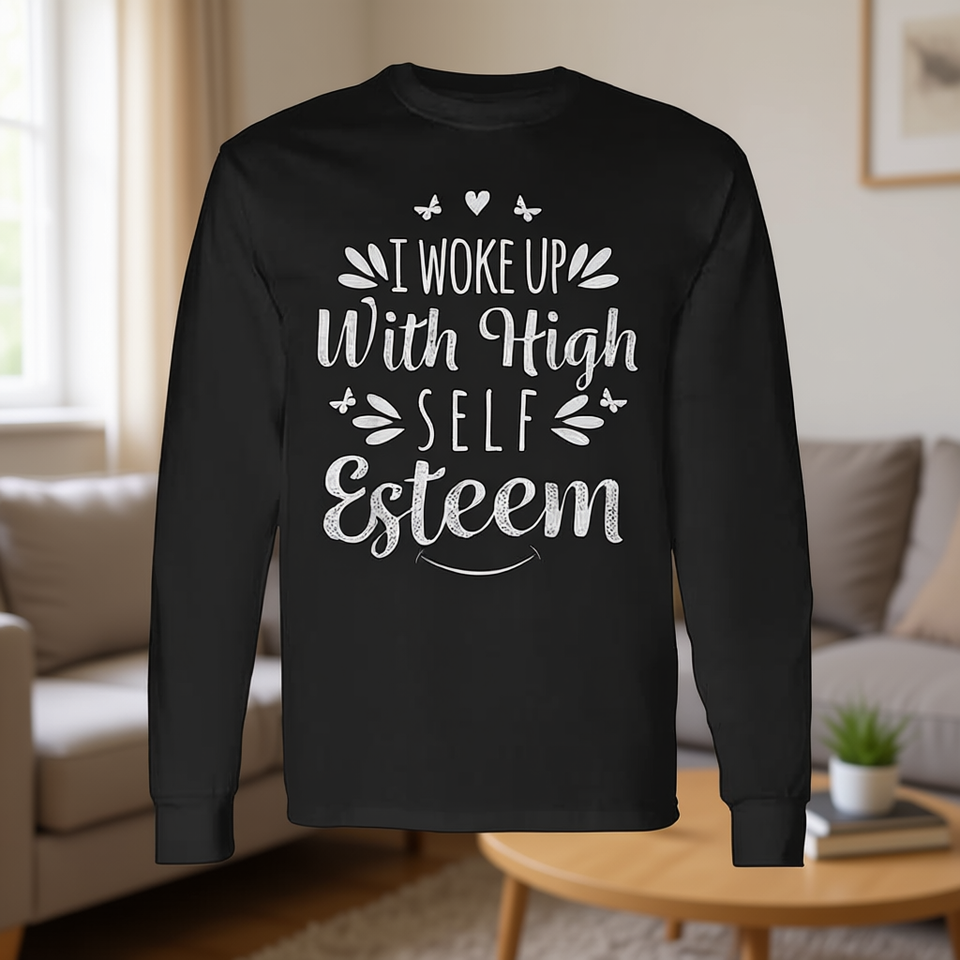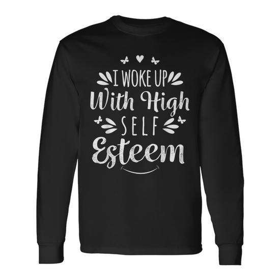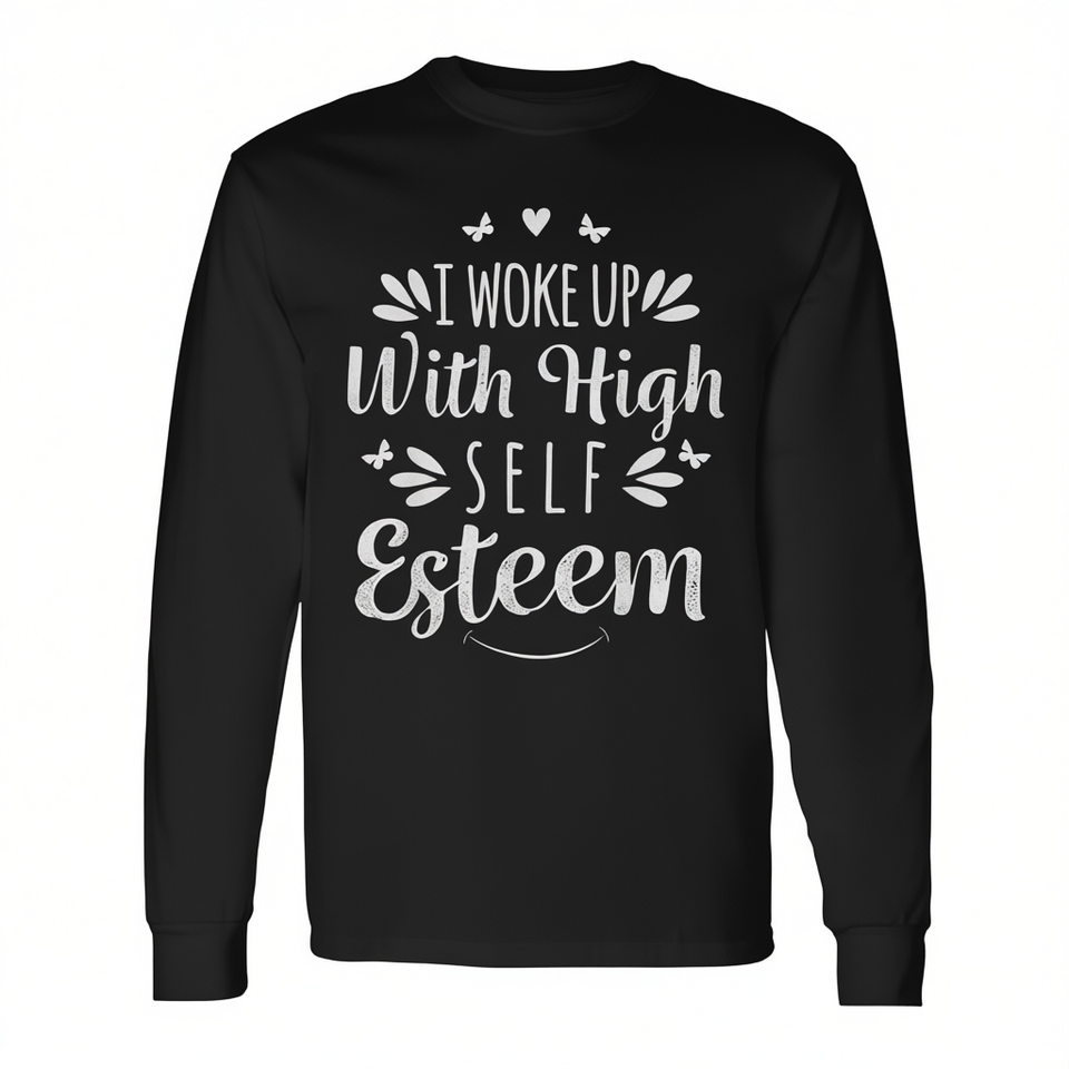 Svegliandomi con un'alta stima di sé, t-shirt a maniche lunghe, girocollo unisex, abbigliamento promozionale per adulti