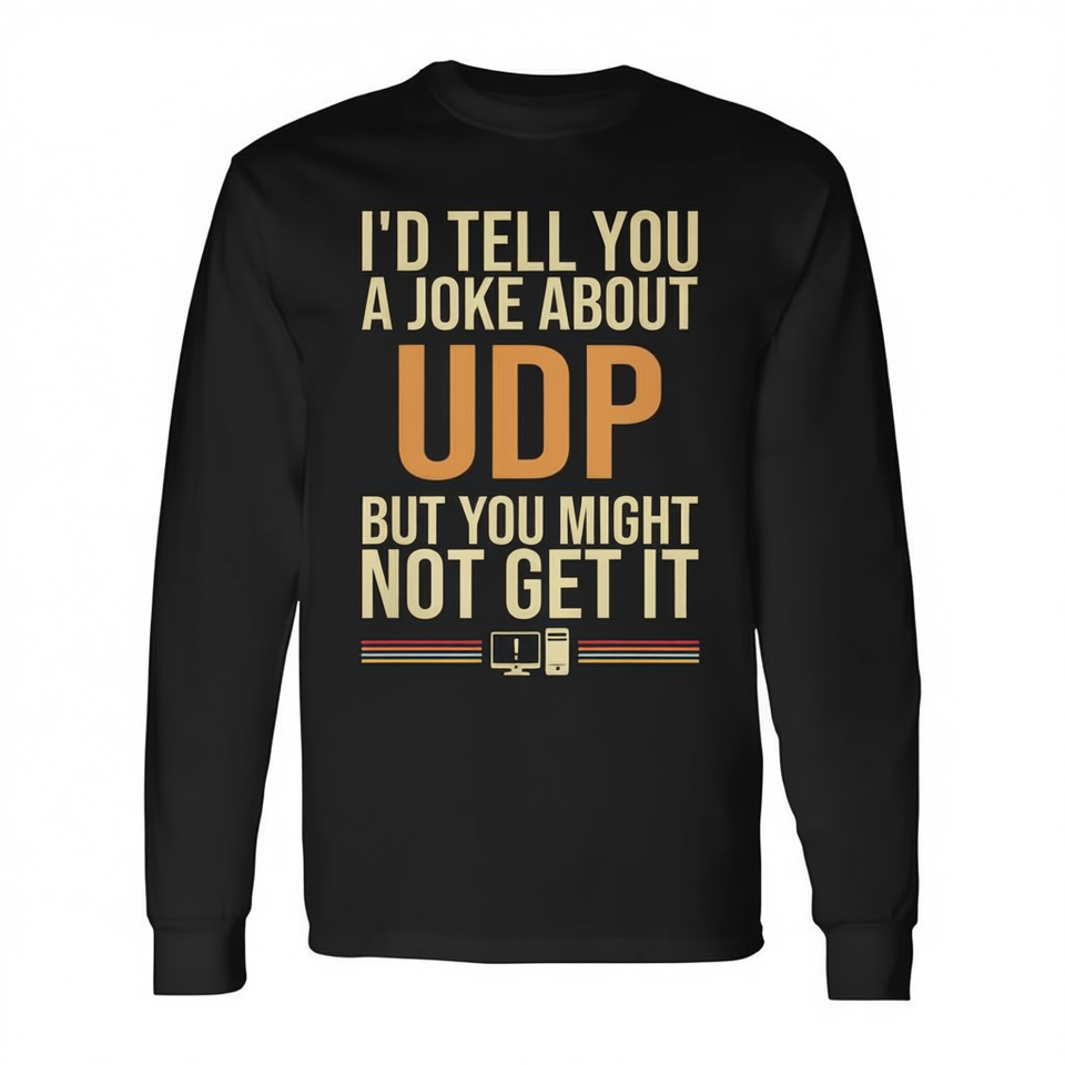 Ti raccontavo una barzelletta su UDP, maglietta a maniche lunghe, umorismo tecnologico e di sicurezza