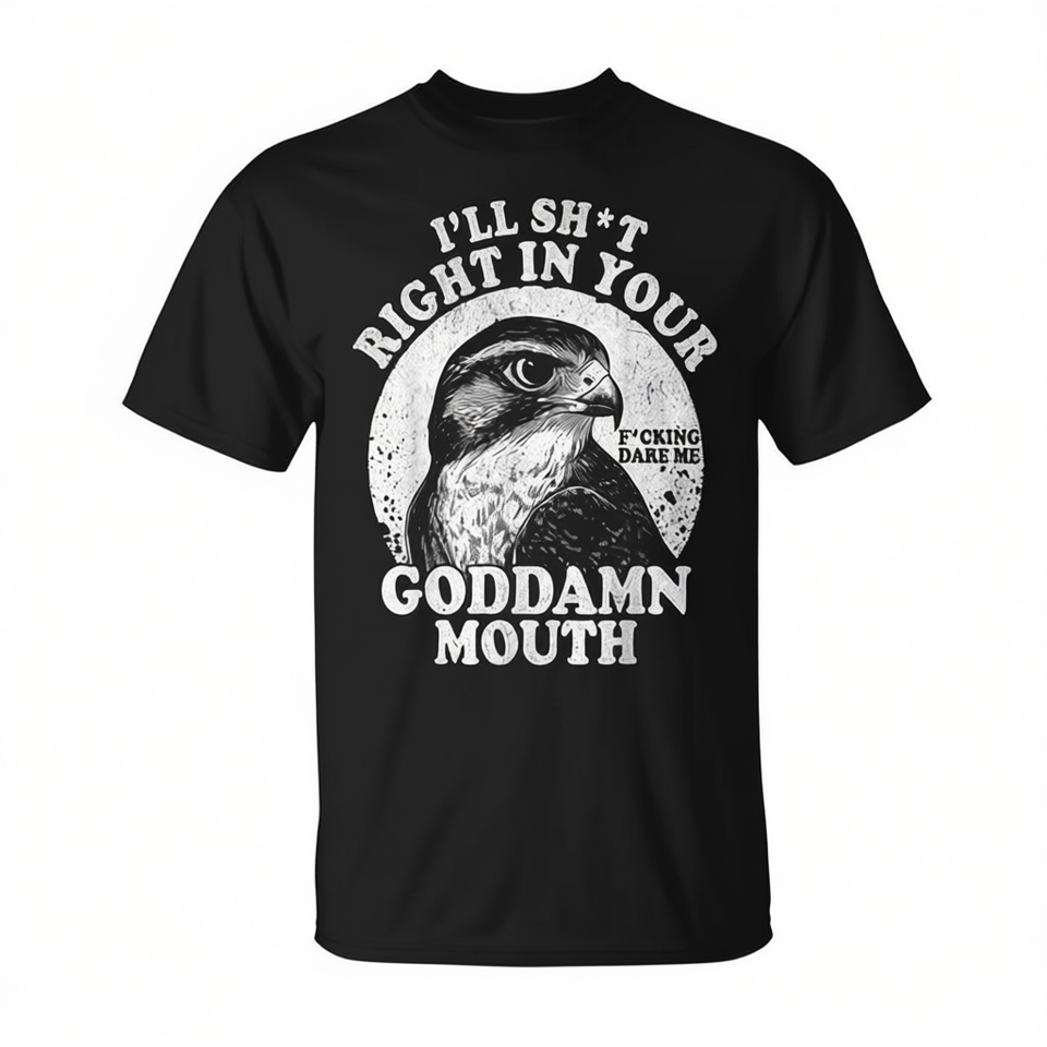 Maglietta con citazione: "Mi tacerò direttamente in bocca a te, stronco"