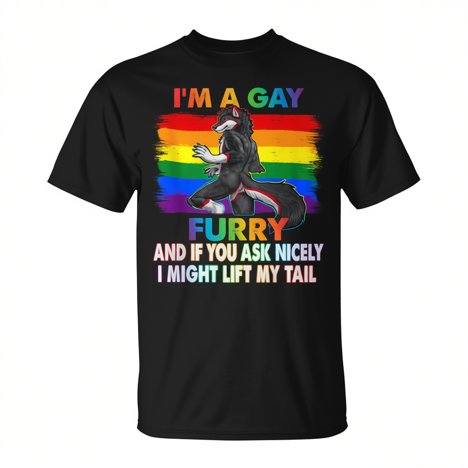 T-shirt Unisex a Maniche Corte Girocollo per Adulti con Stampa Digitale - I'm A Gay Furry Rainbow Fox Wolf Fursona Pride Month