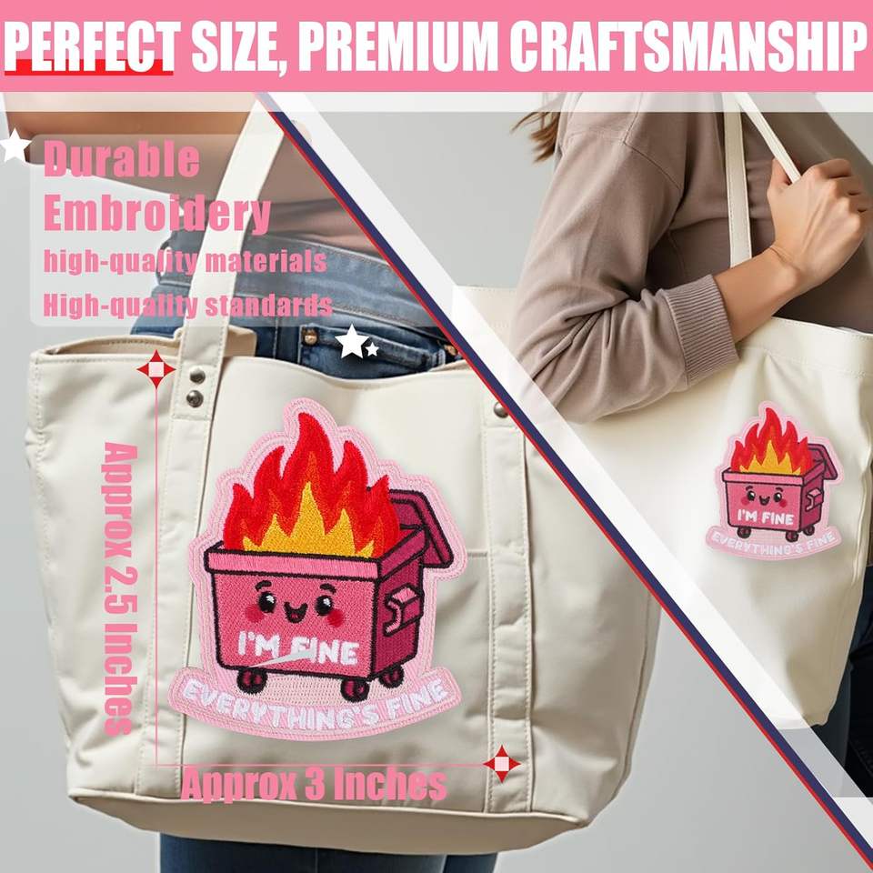 Sto bene tutto bene Patch 3x2.5 pollici rosa cassonetto fuoco ricamato anello gancio per cappelli gilet cane Patch muro
