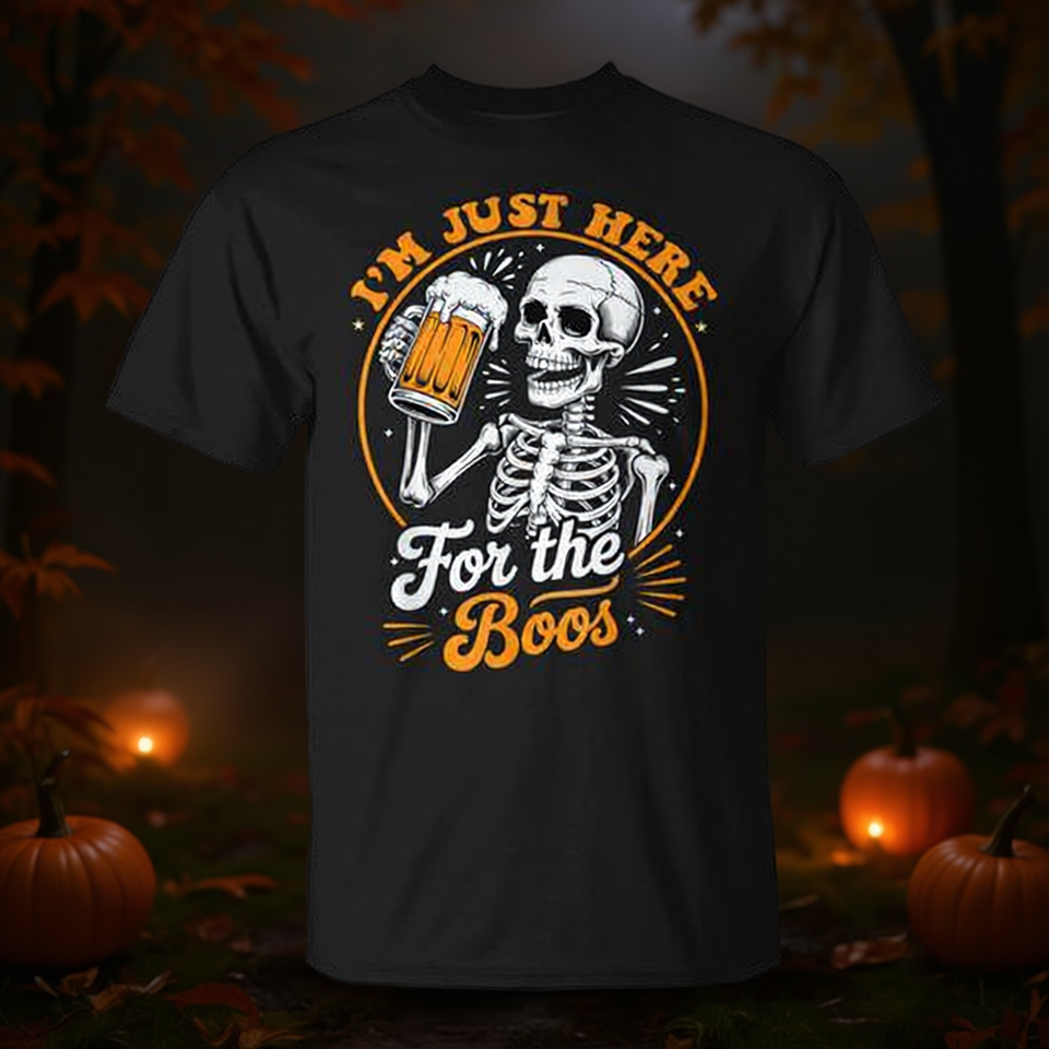 I'm Just Here For The Boos T-shirt con stampa scheletro di Halloween per adulti unisex nera