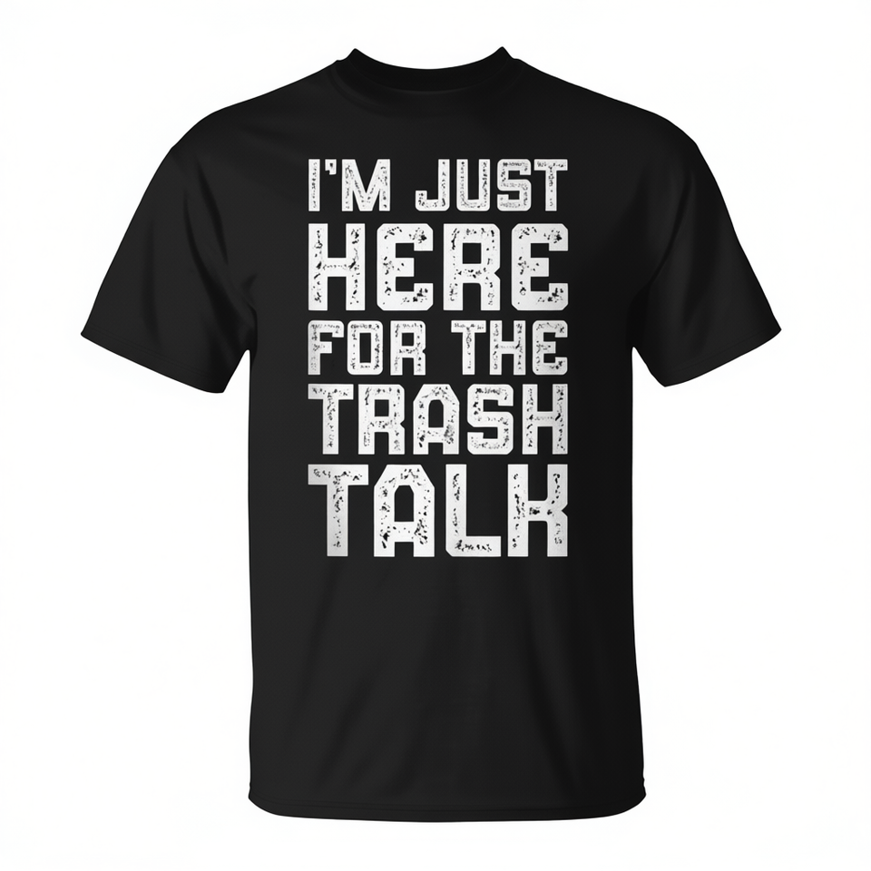 T-shirt da uomo I'm Just Here For The Trash Talk, nera, taglia L, girocollo, manica corta, per sport e giochi, con stampa serigrafica