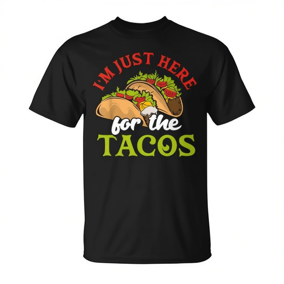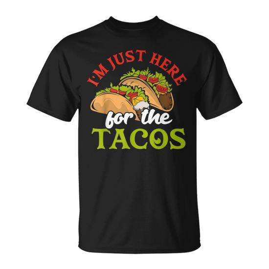 T-shirt I'm Just Here For The Tacos a maniche corte, girocollo, design promozionale unisex per adulti