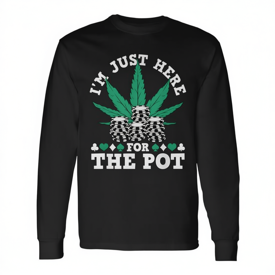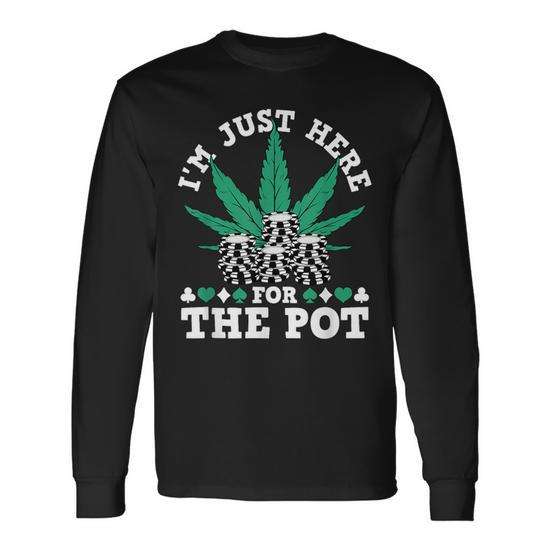 T-shirt a maniche lunghe con stampa 'I'm Just Here For The Pot Marijuana Poker Chips'