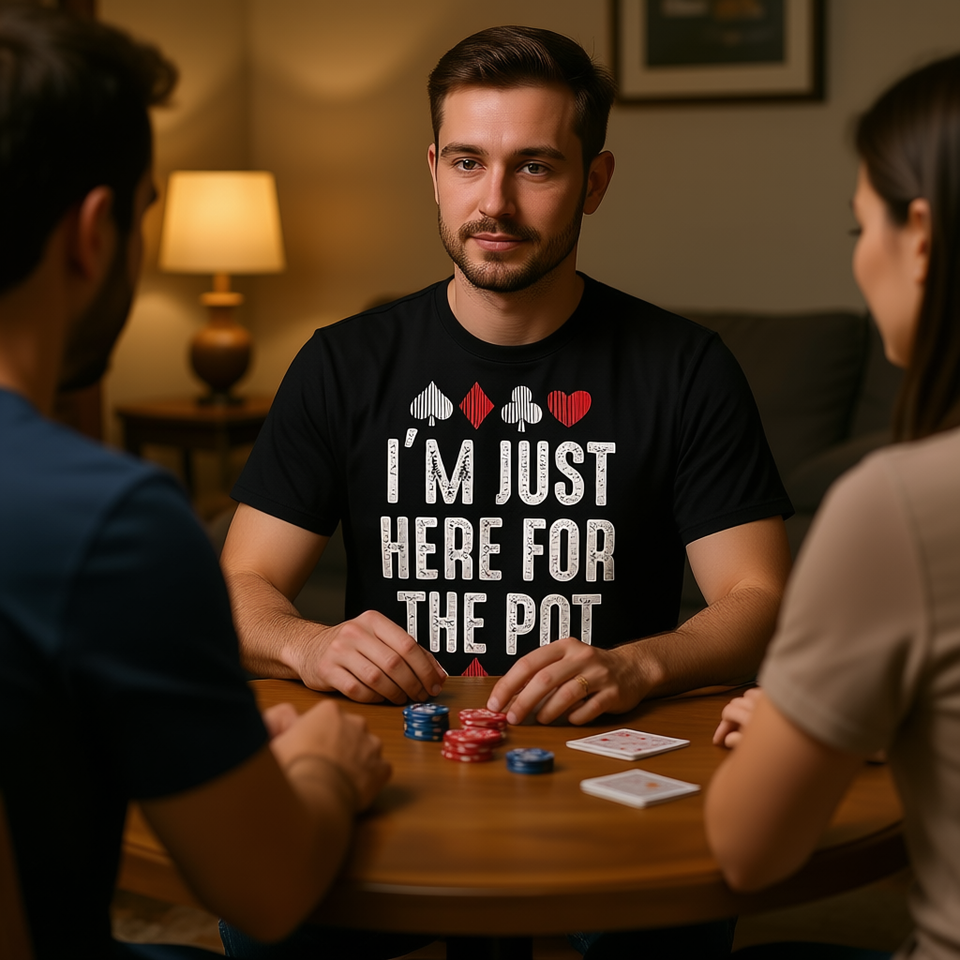 T-shirt I'm Just Here For The Pot Poker, camicia casual da uomo nera