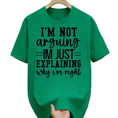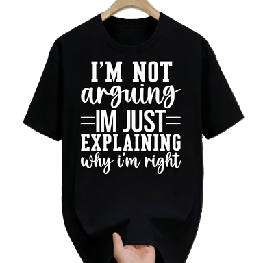 I'm Not Arguing Funny Sarcastic Quote T-Shirt, Humor Text Slogan Attitude Graphic Tee Gift. Oversized Cotton Short Sleeve Streetwear T-Shirt Casual Top