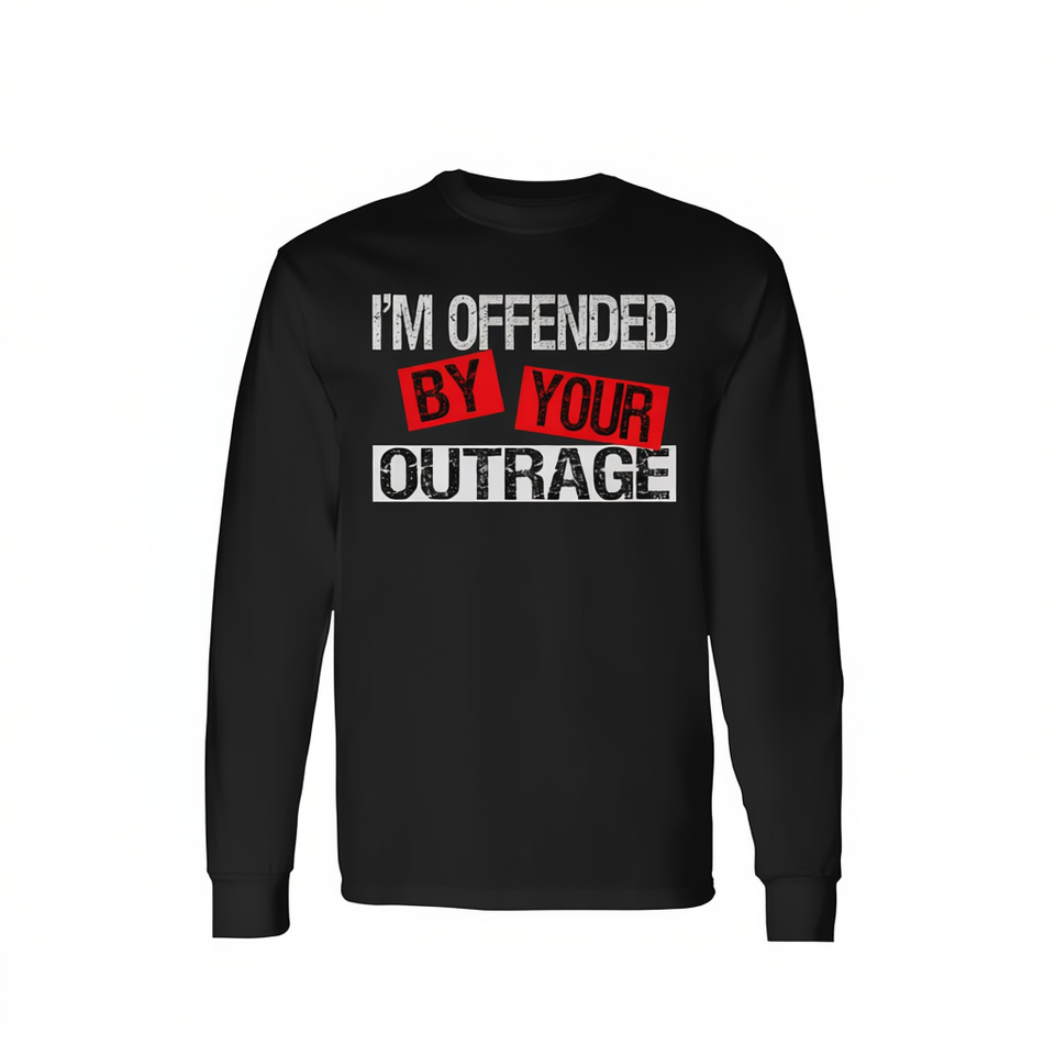 T-shirt a maniche lunghe con scritta 'I'm Offended By Your Outrage', maglietta con posizione politica.