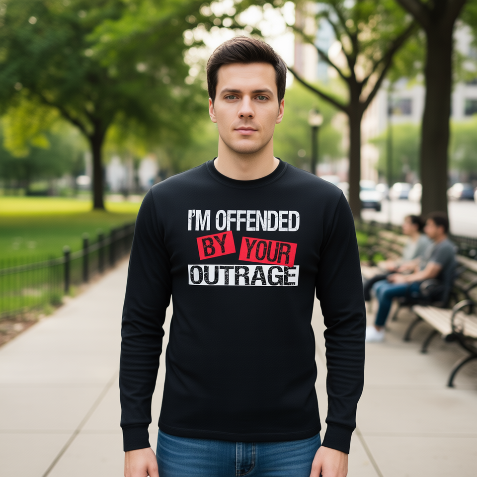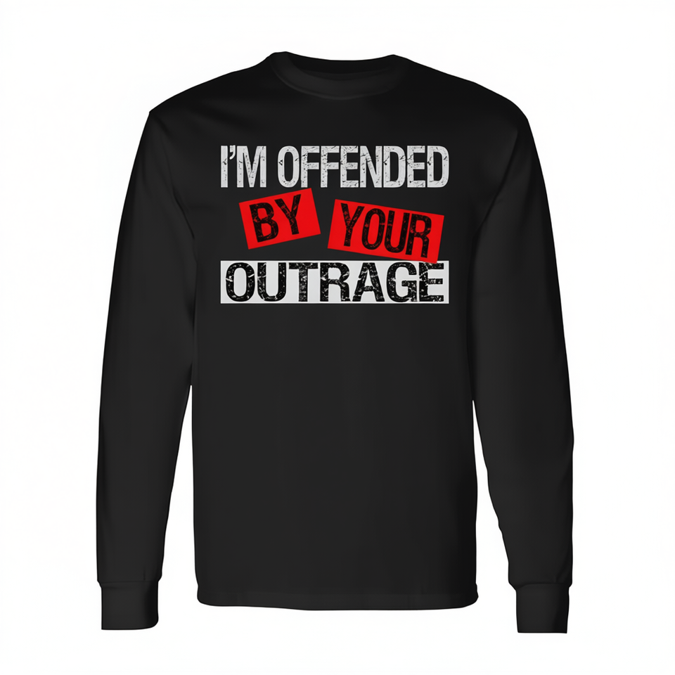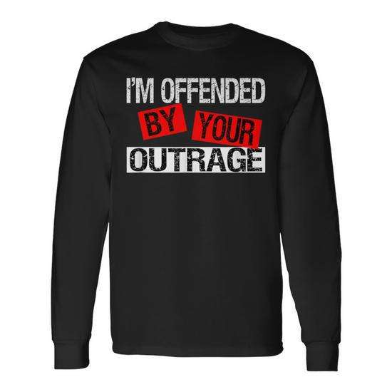 T-shirt a maniche lunghe con stampa 'I'm Offended By Your Outrage' dal design politicamente correttamente corretto
