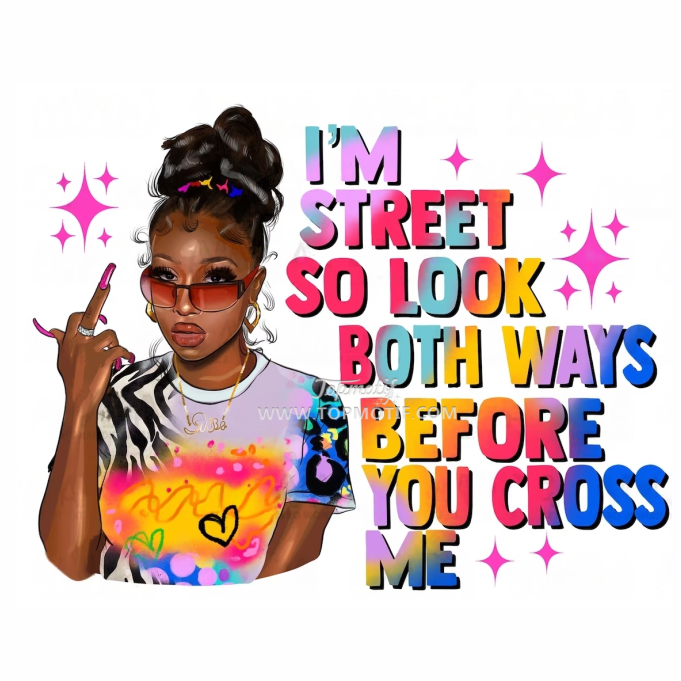 Sono strada, quindi guarda in entrambe le direzioni prima di incrociarmi Applique per stampa a trasferimento termico da ragazza Afro per indumenti felpa borse cuscini
