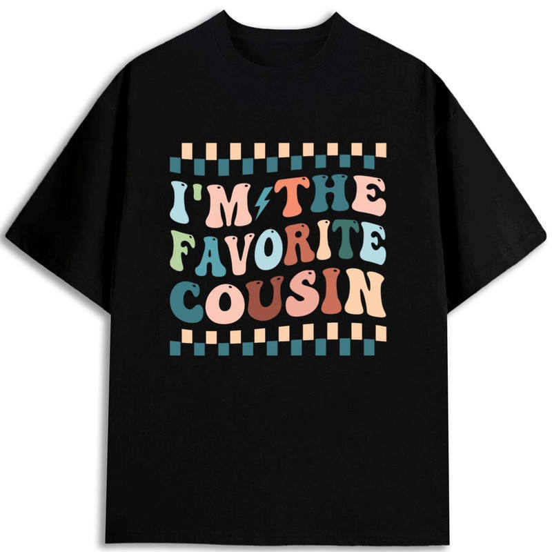 T-shirt da uomo I'm the Favorite Cousin, 100% cotone, girocollo, manica corta, design stampato con motivo, tessuto jersey anti-pilling