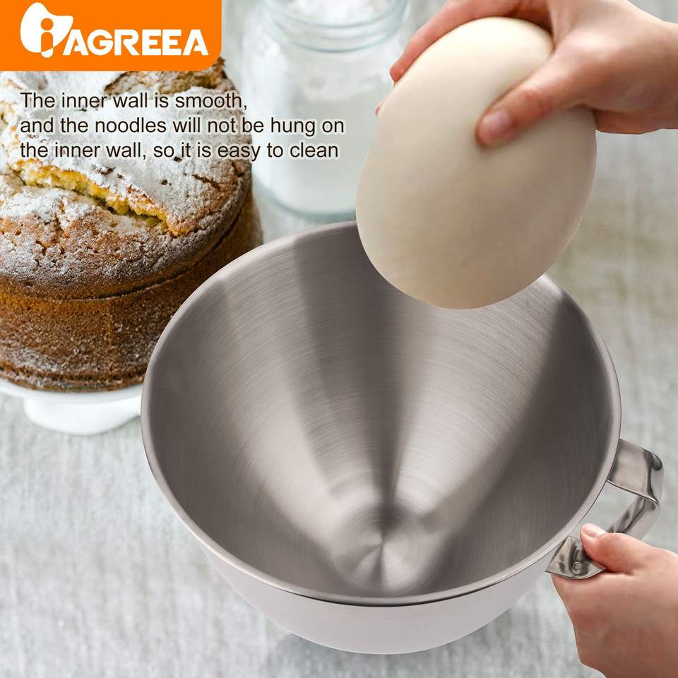 IAGREEA 4.5QT/5QT Stainless Steel Mixing Bowl Lightweight Drop Resistant Handle for KitchenAid Stand Mixers Models Food Mixers