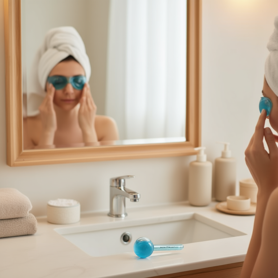 Globi di ghiaccio Myrva in vetro per massaggio a freddo per il viso, uso domestico, colore blu