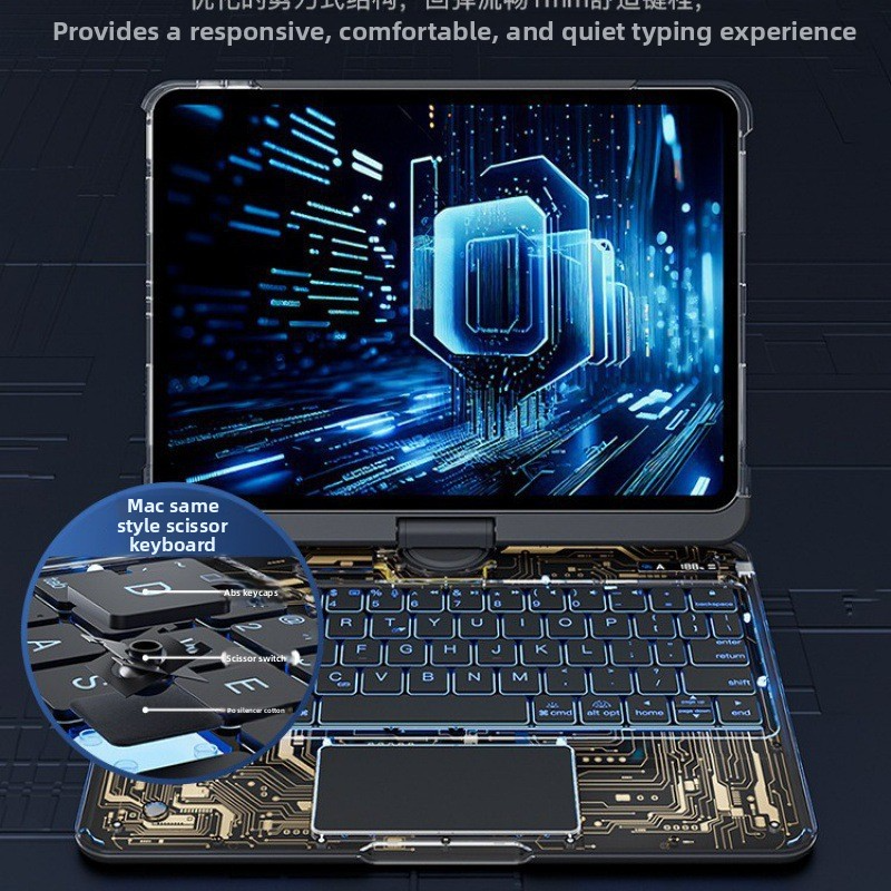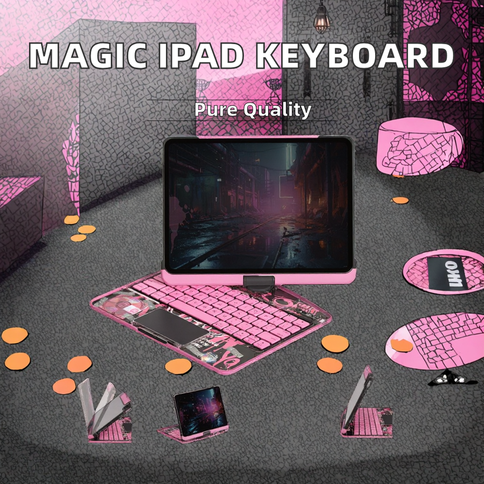 IFacemall 2024 Custodia Trasparente in PU con Tastiera Magica per iPad Pro 11 Pollici Popolare Tastiera Wireless Rotante a 360° con Trackpad Retroilluminato
