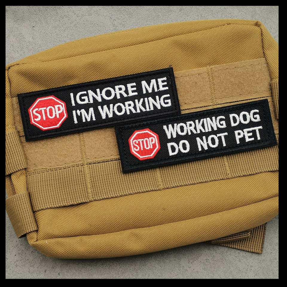 IGNORE ME I'M WORKING Embroidery Funny Pet Dog Patch Service Dog Fabric Sentence Sew-on Bag Hat Dog Vest DIY Label With Fastener