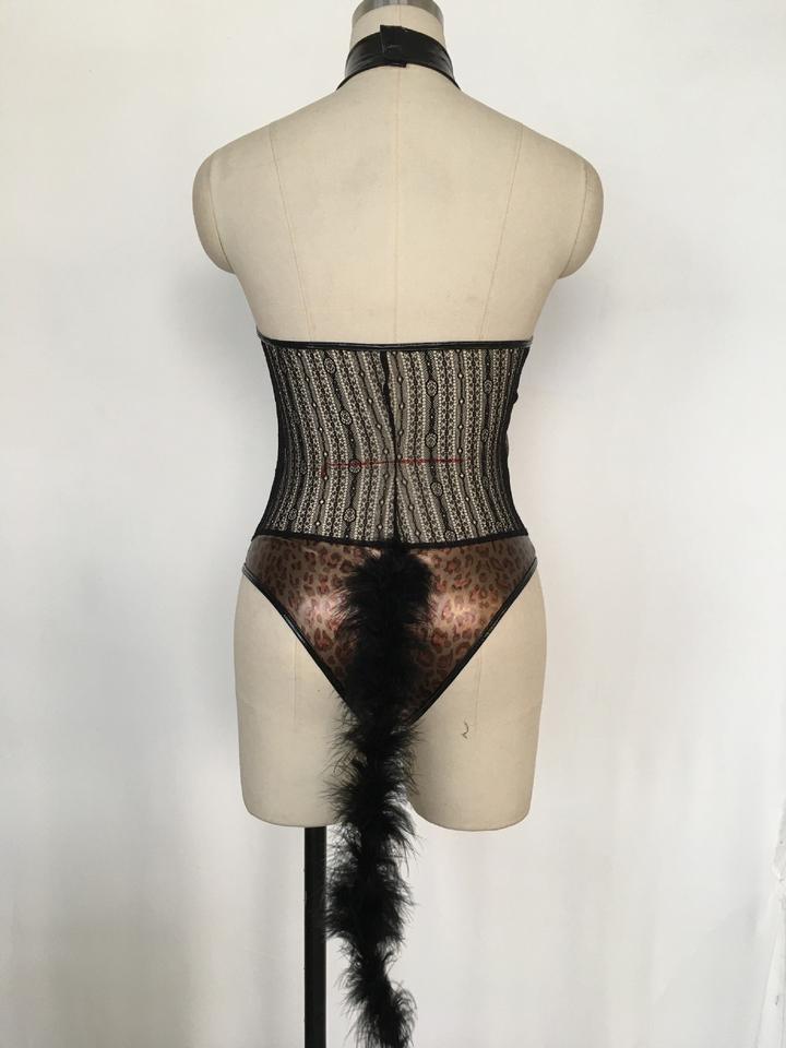 IHOOV Cat Girls Sexy Leather Hollow Out Bodysuit Leopard Print Nightwear Erotic One Piece Teddy Lingerie