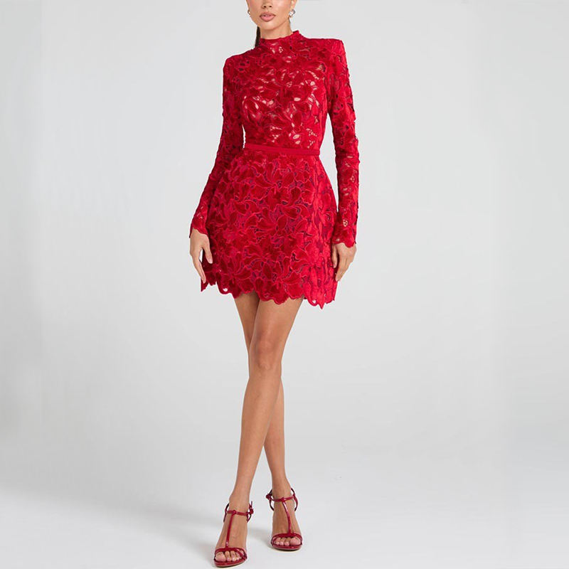 IHOOV Abito da Donna con Collo Alto, Maniche Lunghe e Zip Posteriore, Elegante Abbigliamento da Club Notturno