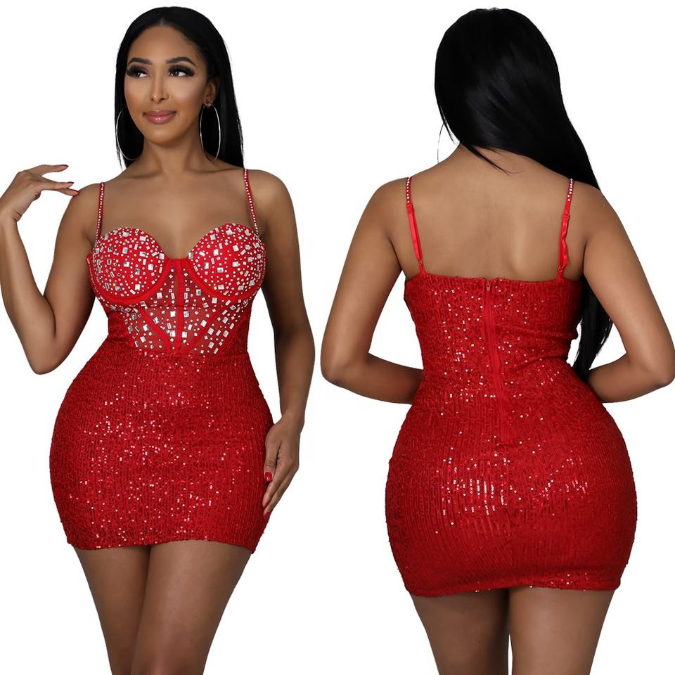 IHOOV Hot Glitter Diamond spalline paillettes Club Wear abito da donna Sexy Mini aderente
