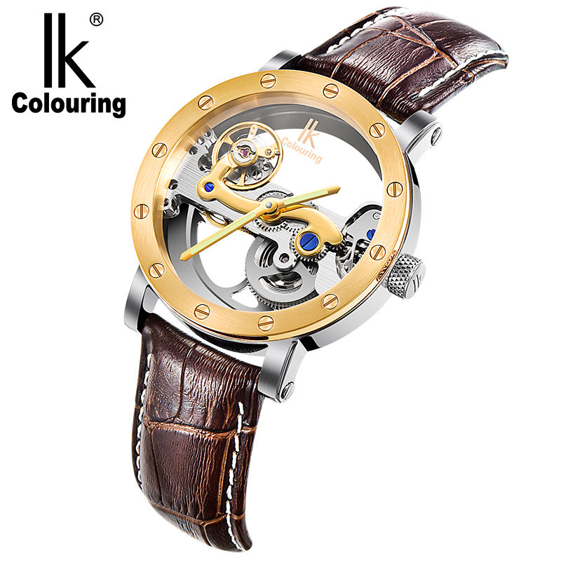 Orologio da Polso Meccanico Automatico Scheletrato IK Colouring 98393G da Uomo, Lusso con Cassa Trasparente, Relogio Masculino