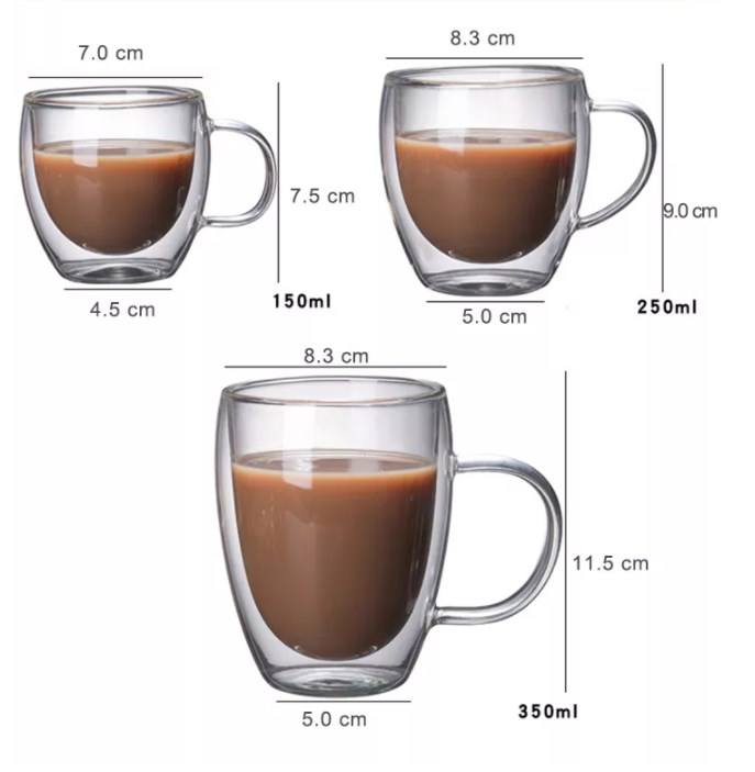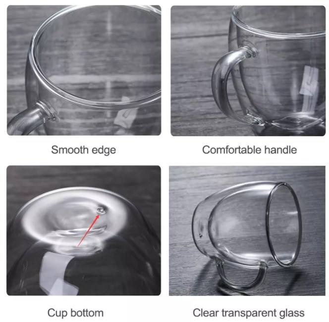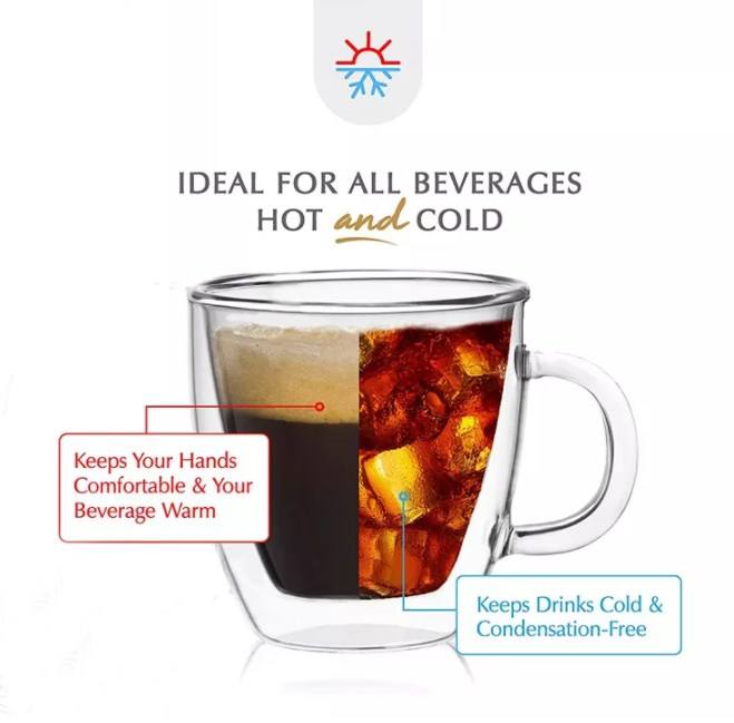 Tazza in Vetro Borosilicato a Doppia Parete IKOO con Manico, Senza BPA, Resistente al Calore, Lavabile in Lavastoviglie e Utilizzabile in Microonde per Bevande Calde (Cappuccino)