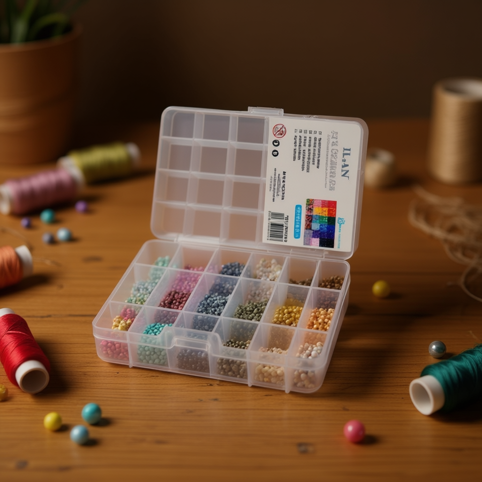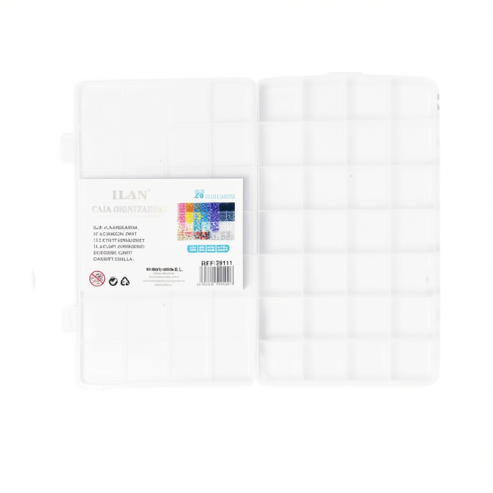 Scatola organizer in plastica trasparente ILAN con 28 scomparti 13x22 cm per la conservazione di perline