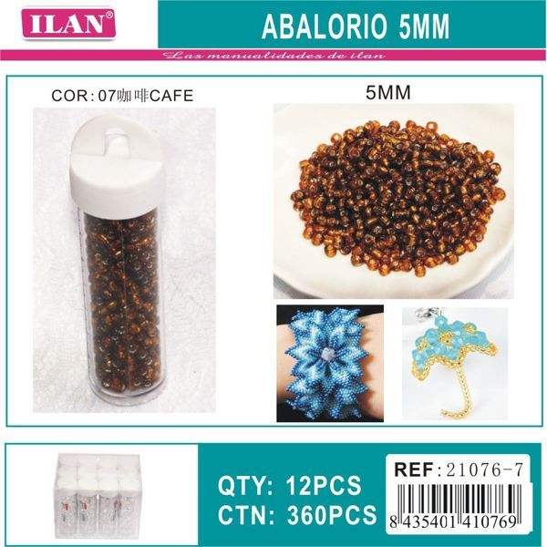 Perline ILAN Abalorio 5mm Colore Caffè per Creazione di Gioielli, 12 Pezzi per Tubo